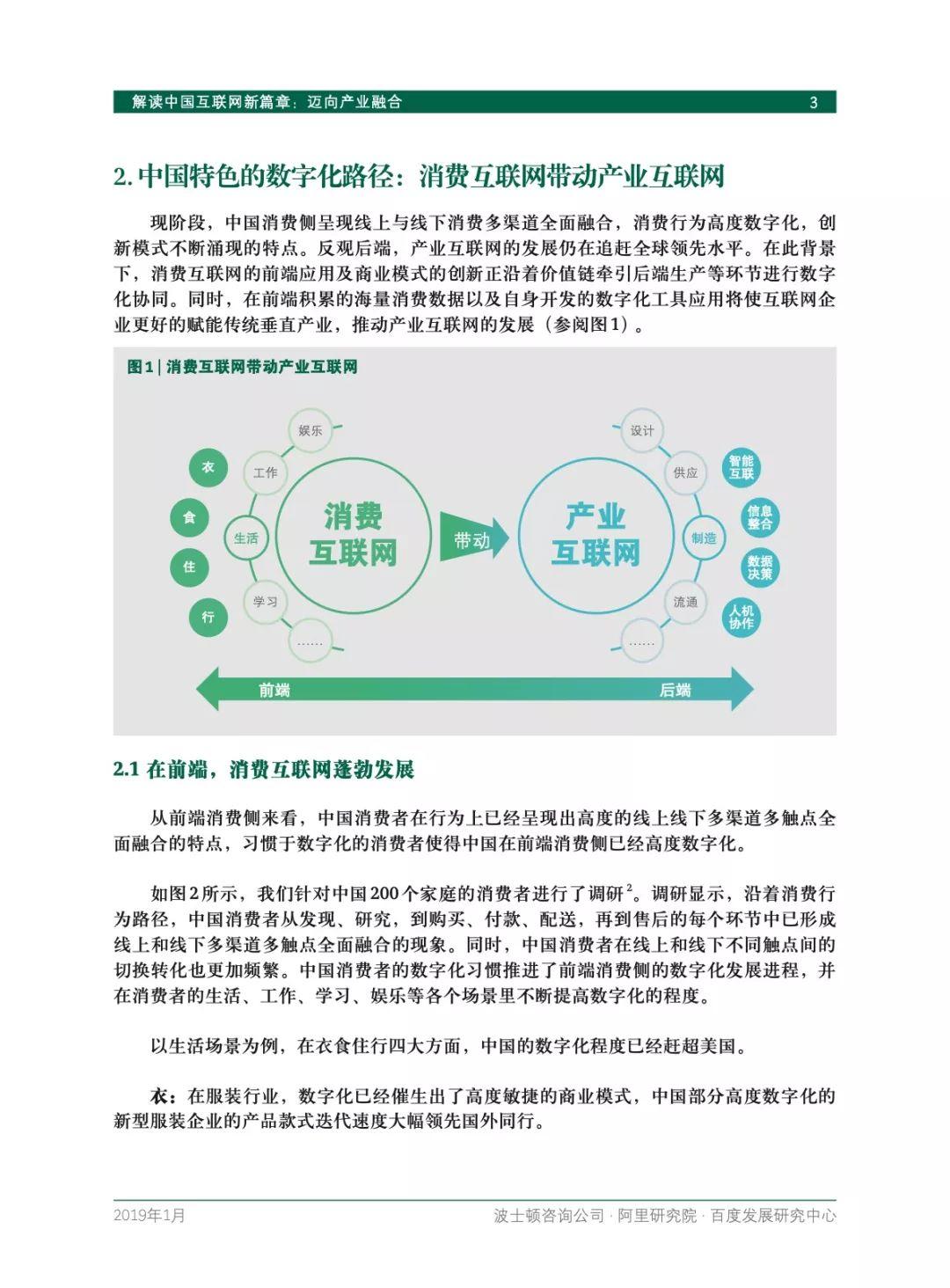 今天,BCG、阿里研究院、百度发展研究中心再次联手,解读近期中国互联网逐步加强的产业融合趋势。报告将对市场广泛关注的相关问题进行充分探讨,包括为什么近期中国互联网企业更加积极地走向产业互联网?在中国,消费互联网和产业互联网是何种关系?中国互联网企业在产业数字化进程中起到什么作用?如何在中国互联网的新篇章中胜出?
